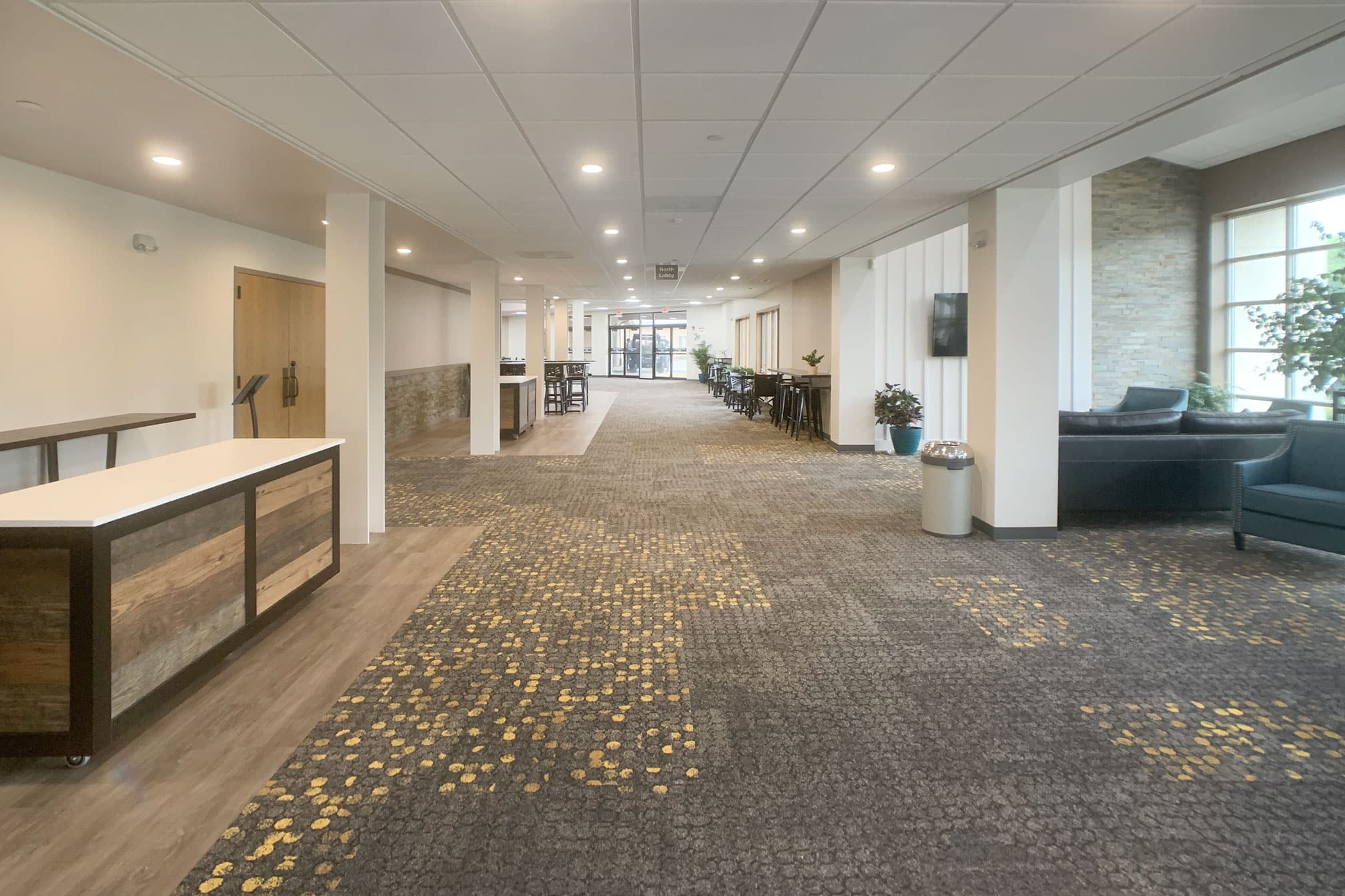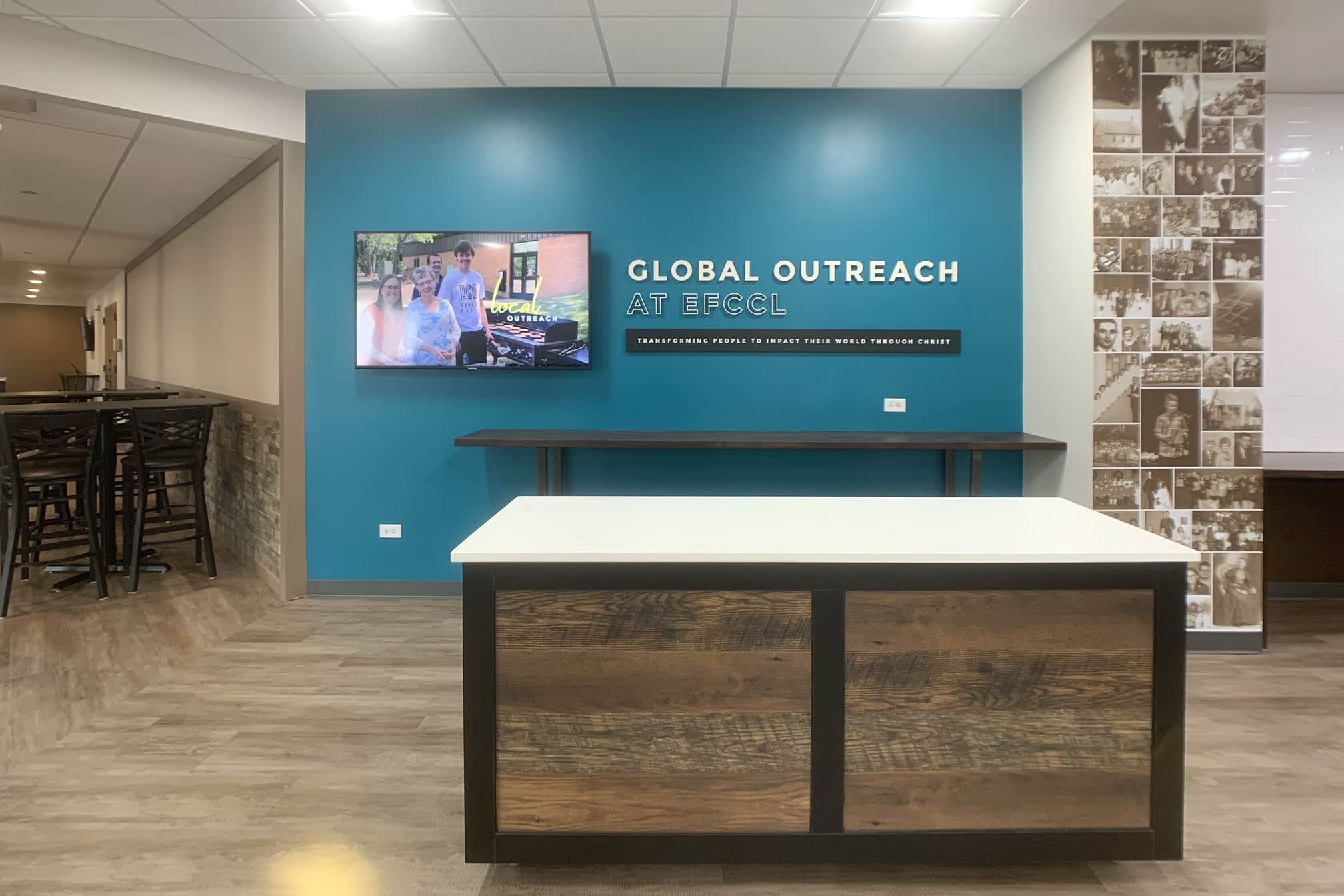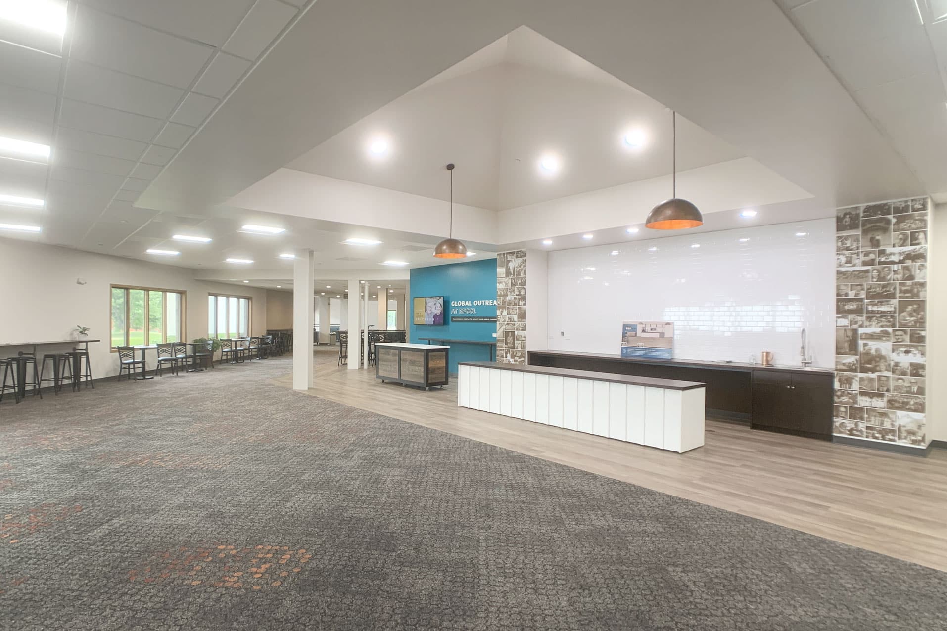 The Evangelical Free Church of Crystal Lake (EFCCL) is located in the Northwest Suburbs of Chicago. EFCCL has been in Crystal Lake for over 100 years and continue to serve its community. EFCCL reached out to Risepointe to refresh and reimagine the interiors of their lobby and cafe area. Risepointe relocated coat racks that were taking up precious lobby square footage - added sound and light locks that lead into the worship center - and created a new material palette that will be used for years to come as more projects come up. Risepointe has now worked with EFCCL on three separate campus projects since first meeting with them in 2020. EFCCL is a local church to the Risepointe Algonquin Studio and staff at Risepointe are also members with EFCCL.