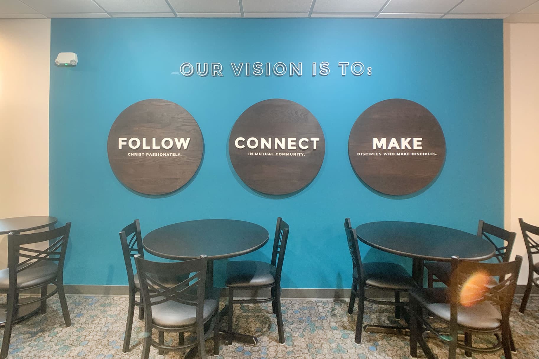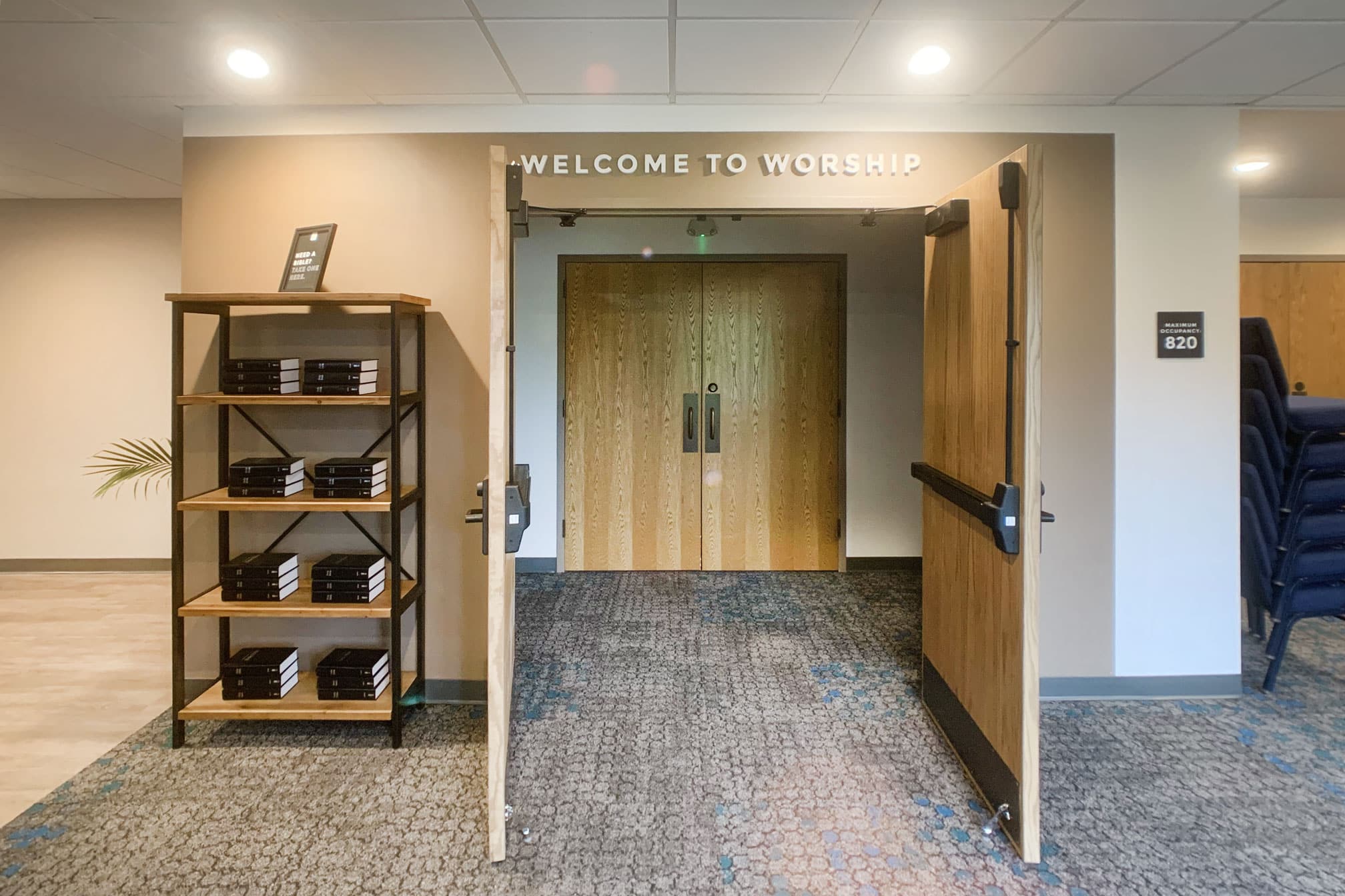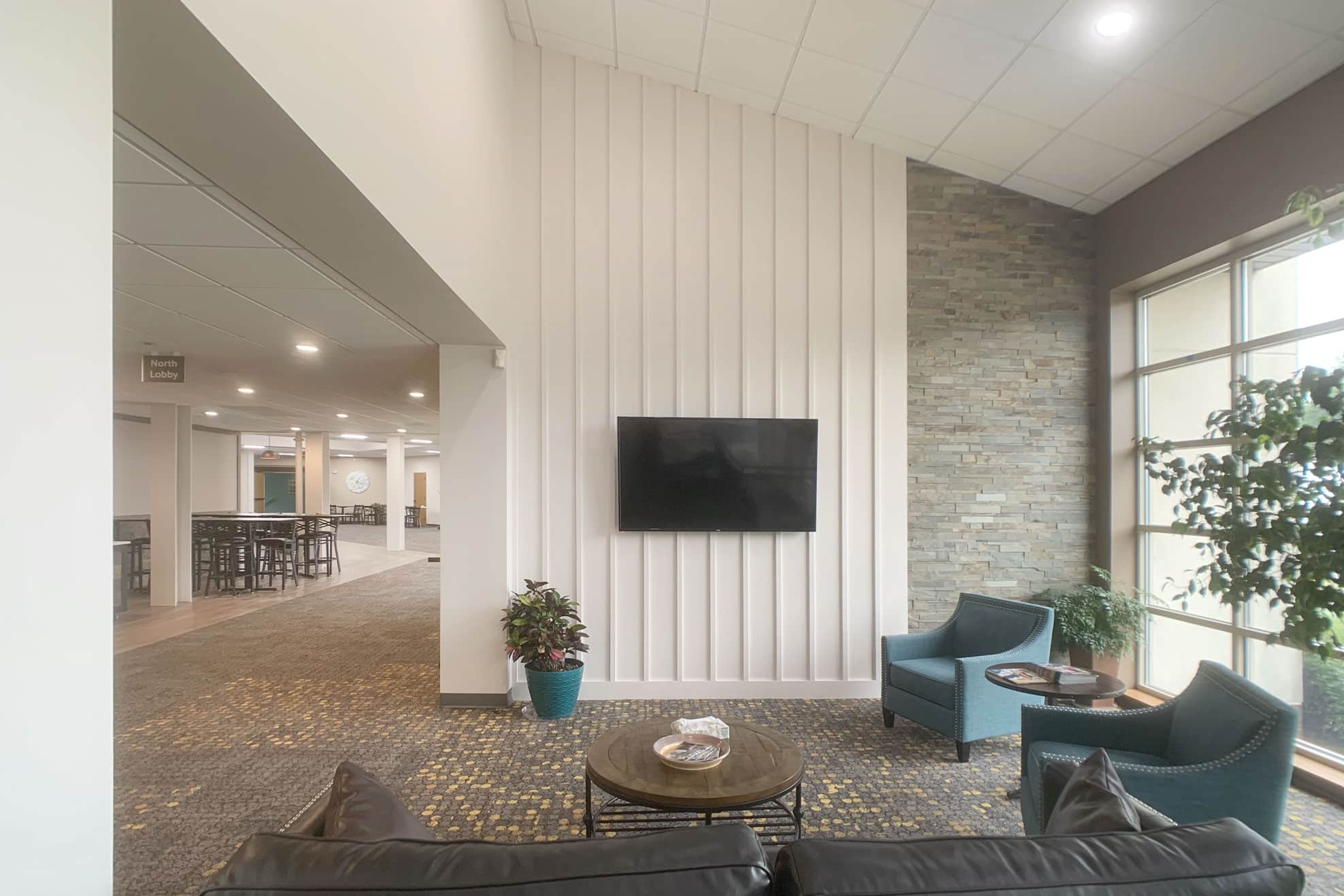 The Evangelical Free Church of Crystal Lake (EFCCL) is located in the Northwest Suburbs of Chicago. EFCCL has been in Crystal Lake for over 100 years and continue to serve its community. EFCCL reached out to Risepointe to refresh and reimagine the interiors of their lobby and cafe area. Risepointe relocated coat racks that were taking up precious lobby square footage - added sound and light locks that lead into the worship center - and created a new material palette that will be used for years to come as more projects come up. Risepointe has now worked with EFCCL on three separate campus projects since first meeting with them in 2020. EFCCL is a local church to the Risepointe Algonquin Studio and staff at Risepointe are also members with EFCCL.